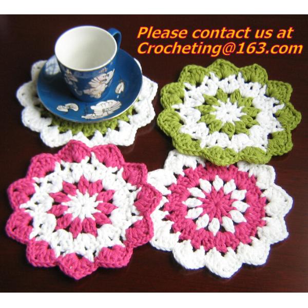 Hand made 6.3 inch crochet sunflower doily - coaster set of 4 - diameter : 16 cm - crochet Images |
